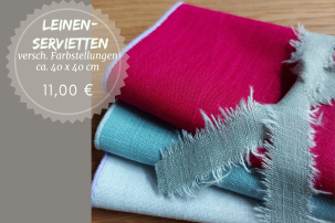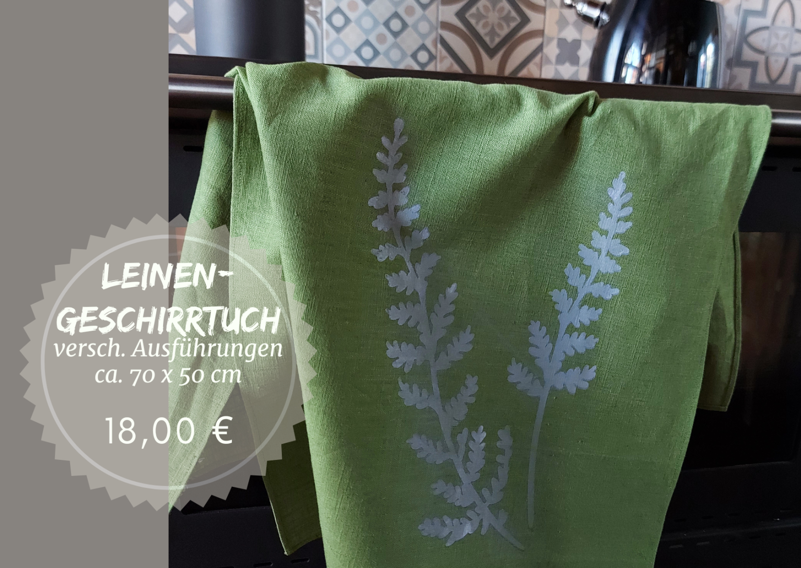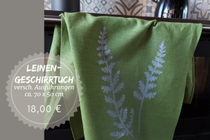 Die Leinenprodukte wurden aus 100% Leinen gefertigt und von Hand bedruckt.